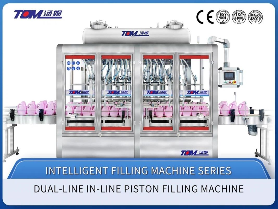 สายการบรรจุของเหลวซักผ้าอัตโนมัติ 1-5 ลิตร เป็นโซลูชันการบรรจุภัณฑ์ประสิทธิภาพสูงที่ออกแบบมาโดยเฉพาะสำหรับอุตสาหกรรมเคมีภัณฑ์รายวัน เหมาะอย่างยิ่งสำหรับการบรรจุของเหลวซักผ้า น้ำยาปรับผ้านุ่ม ผงซักฟอก และของเหลวหนืดอื่นๆ ระบบนี้ติดตั้งระบบควบคุม PLC อัจฉริยะที่ผสานรวมการป้อนขวด การบรรจุ การปิดฝา การติดฉลาก และการส่งมอบผลิตภัณฑ์สำเร็จรูปโดยอัตโนมัติ ทำให้ได้การผลิตแบบอัตโนมัติเต็มรูปแบบด้วยประสิทธิภาพสูงและความแม่นยำในการบรรจุ